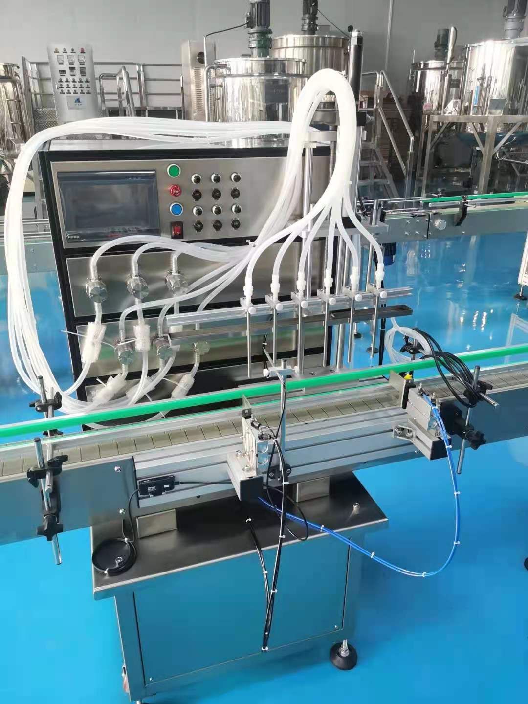 液体灌装机广泛适用于日化、油脂等各行业,可对不同高粘度流体进行灌装。机器设计紧凑合理、外形简洁美观,灌装量调节方便。