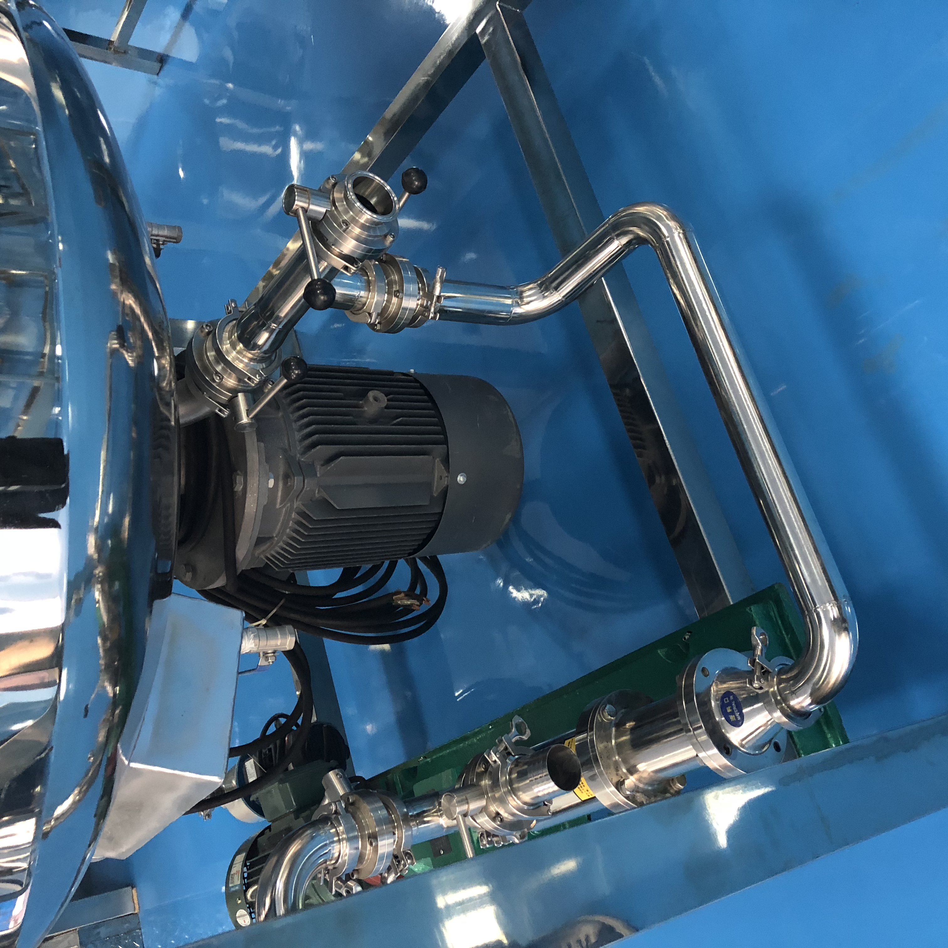 ●锅体采用了三层不锈钢进口板材焊接组成,罐体及管道为镜面抛光,完全符合GMP要求;
