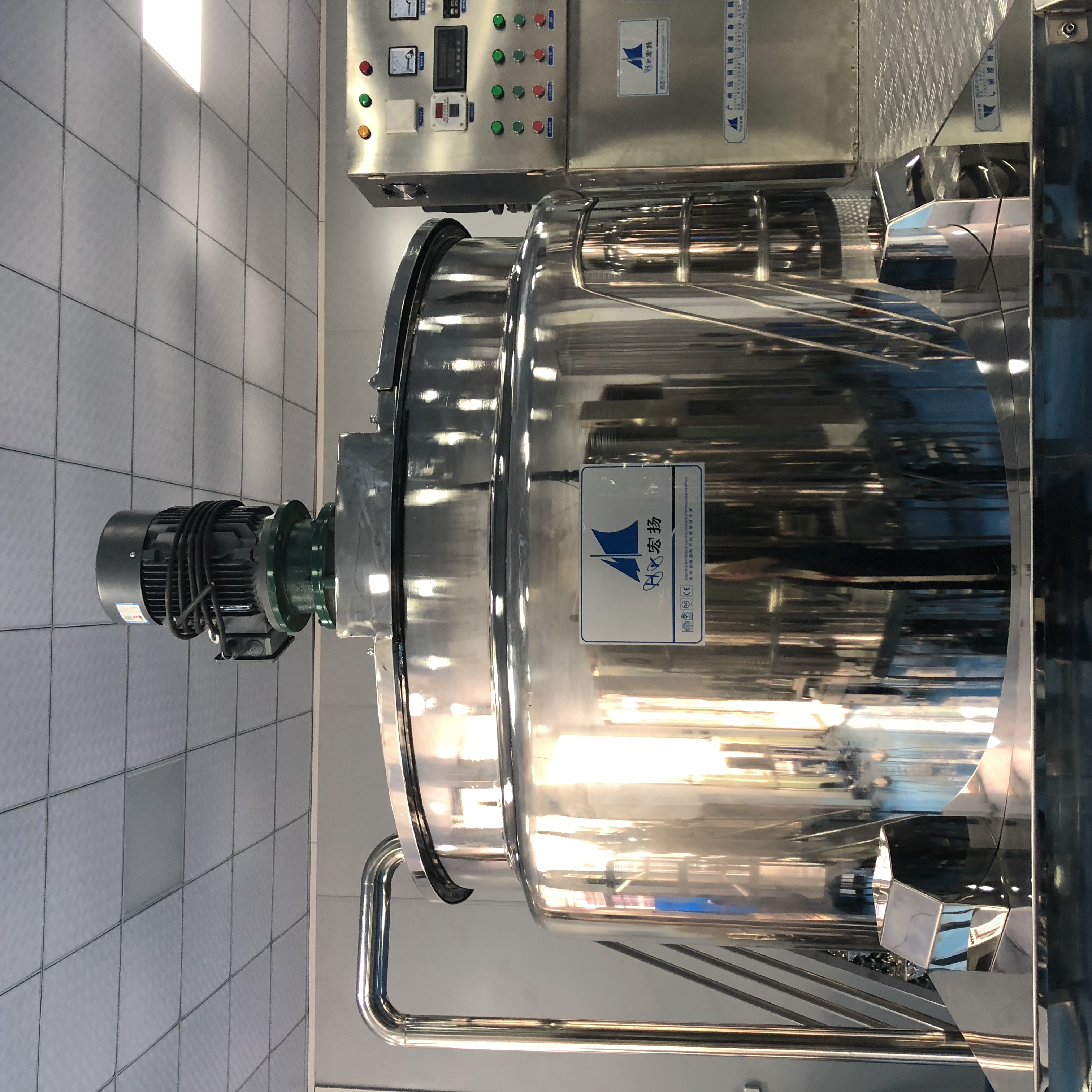 采用夹层加热,内层材质为3mm厚304不锈钢,外层材质为2.5mm厚304不锈钢,并且有恒温作用。可采用水加热或油加热的方式进行加热,并且具有搅拌、加热、均质、冷却、乳化、分散等功能。主搅拌采用无极变速装置,在温度低,粘度高时减少气泡形成;生产效率相当高,30分可生产500公斤成品,并且产品质量相当稳定,是目前中型企业生产洗发水、沐浴露、汽车水蜡、表板液、护发素、皮革上光剂等最理想的设备。
